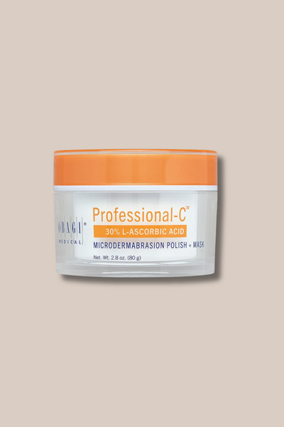 Professional-C Microdermabrasion Polish + Mask, a dual-action Vitamin C face mask that uses ultra-fine crystals to gently buff away the dull, outer layers of skin and infuses the freshly revealed skin with potent 30% L-Ascorbic Acid. For a brighter, smoother, and more youthful-looking appearance.